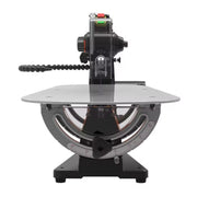 2. Large 649 x 402mm dual-bevel steel table bevels up to 30° to the left and 45° to the right for angled cuts.
