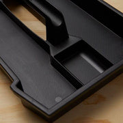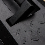 - V-groove with ruler on top of lid holds materials such as lumber and pipes in place for cutting